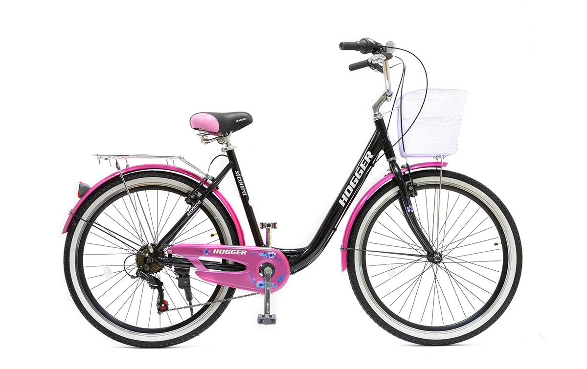 Велосипед 26 Hogger SIGOURA V, 19 (20), алюминий, 7-скор., корзина, черно-розовый